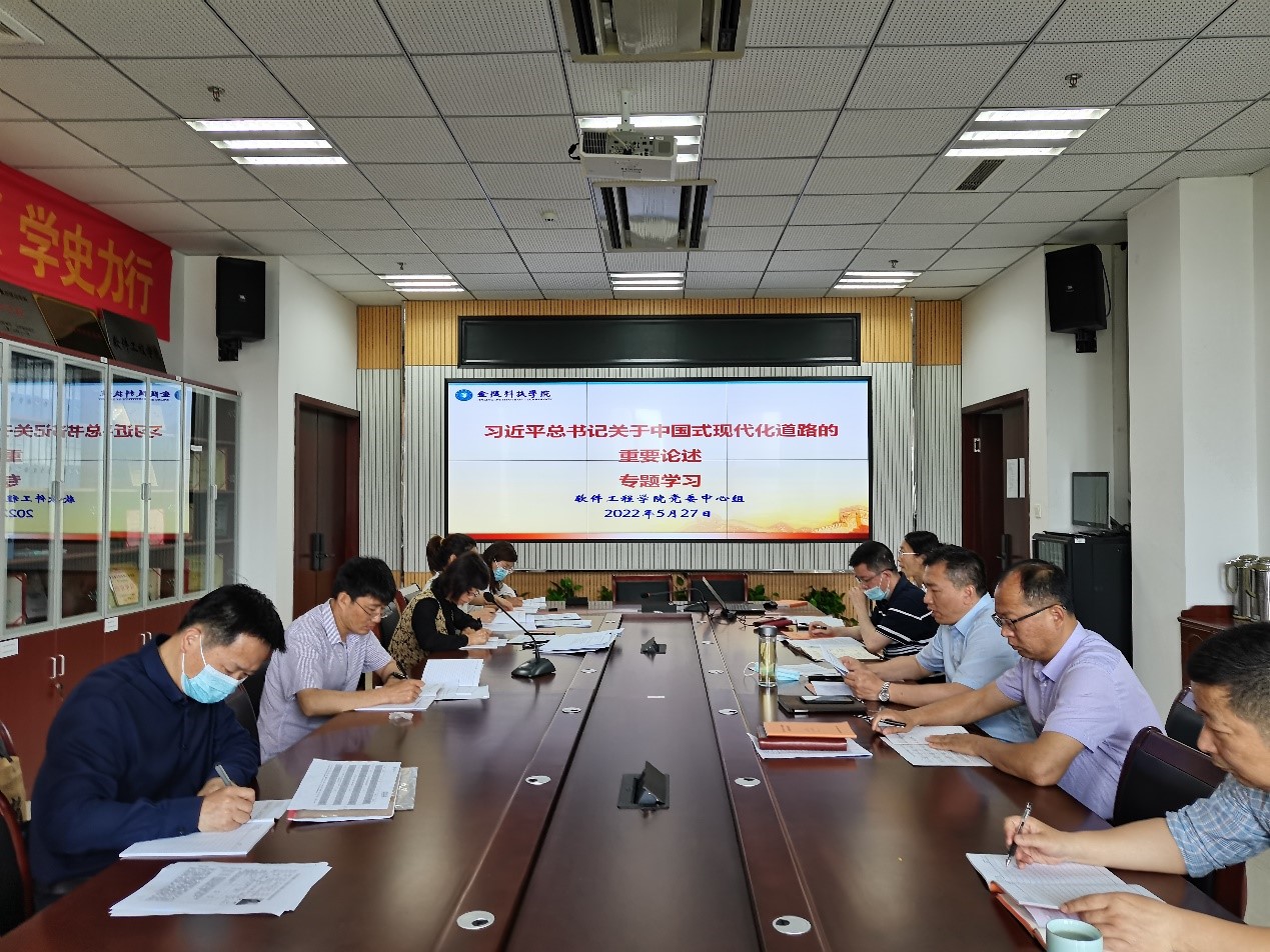5月27日上午,开云kaiyun体育在科技楼325组织开展了中心组学习,专题学习了习近平总书记关于中国式现代化道路的重要论述,会议由学院党委书记徐志国主持,全体中心组成员参与了学习。