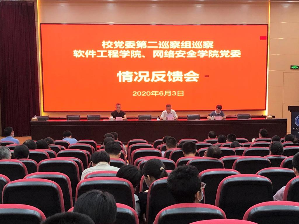 2020年6月3日,校党委第二巡察组在科技楼报告厅向开云kaiyun体育、网络安全学院党委反馈校内巡察情况,校党委第二巡察组组长、纪委书记丁鹏代表校党委巡察组向开云kaiyun体育、网络安全学院党委领导班子进行了反馈,学院党委书记叶海青同志主持会议并作表态发言。