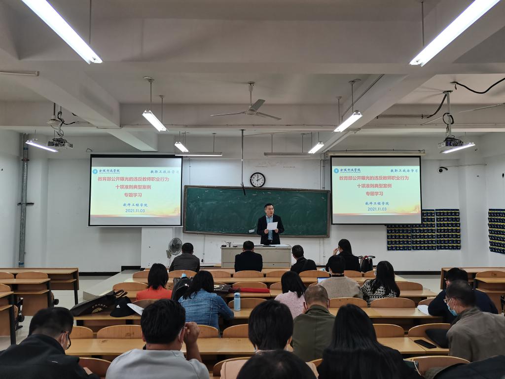 在集中学习阶段,学院党委书记徐志国组织全体教职工进行了警示教育和纪法学习,学习今年以来教育部公开曝光的违反教师职业行为十项准则典型案例及《中华人民共和国公职人员政务处分法》。