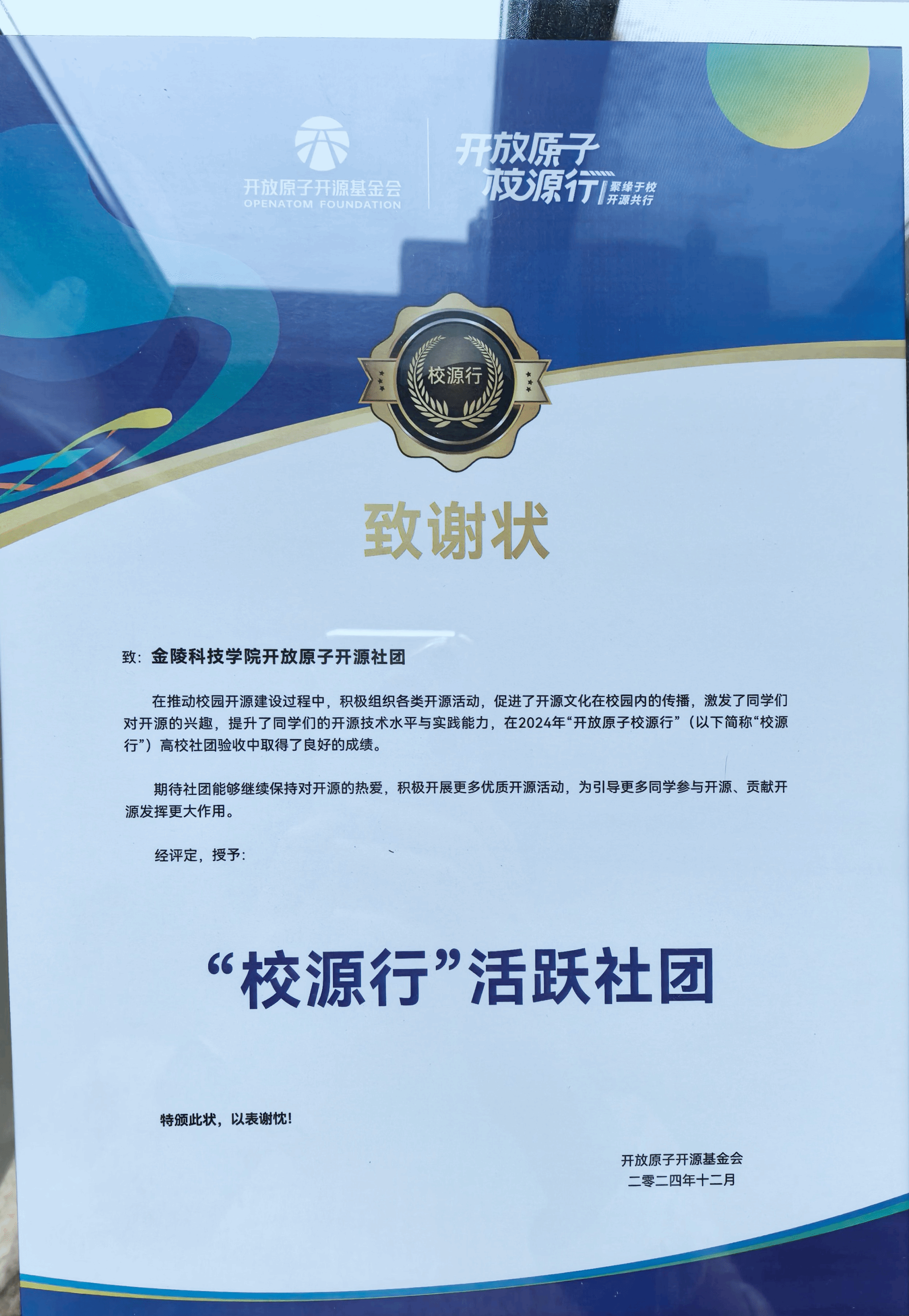 在本次大会上,开云官网开放原子开源社团凭借其在开源领域的积极表现,荣获了“校源行”活跃社团称号。这是对开云官网开源社团在推动开源技术在校园内的普及与实践、组织开展各类开源活动、培养学生开源创新能力等方面所做努力的认可。学校将以此为契机,进一步加强开源社团建设,推动开源技术与教育教学的深度融合,培养更多适应时代发展需求的开源创新人才,为我国开源生态的繁荣发展做出更大的贡献。(通讯员:徐秀云 审核:徐永华)