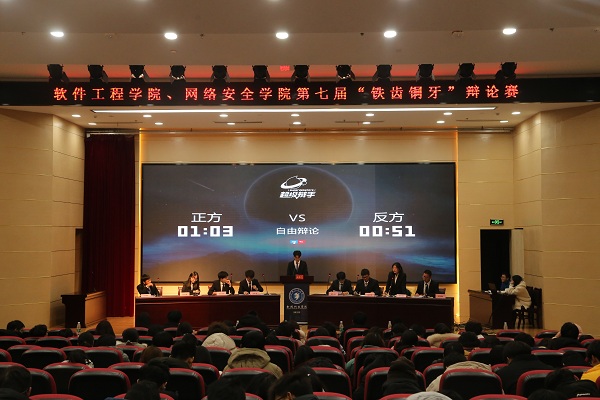 为了丰富同学们的课外活动,培养大家的思辨能力和语言表达能力,12月30日开云kaiyun体育、网络安全学院于科技楼报告厅举办第七届“铁齿铜牙”辩论赛决赛,辅导员孙垒,杜文娟,院辩论社社长陈震,校辩论队领队刘定龙和近200名学生参加本次活动。