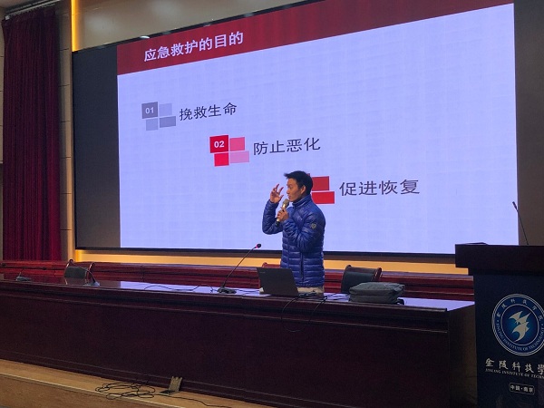 为了增强2020级新生安全突发事故自救知识教育,提高紧急情况自救能力,12月3日,开云kaiyun体育在科技楼2号楼报告厅举办心肺复苏急救知识讲座,本次讲座由南京红十字会救护师资库成员、体育部孙浩老师主讲。讲座由孙垒老师主持,新生辅导员张理航、马晓辉及各年级学生干部代表参加。