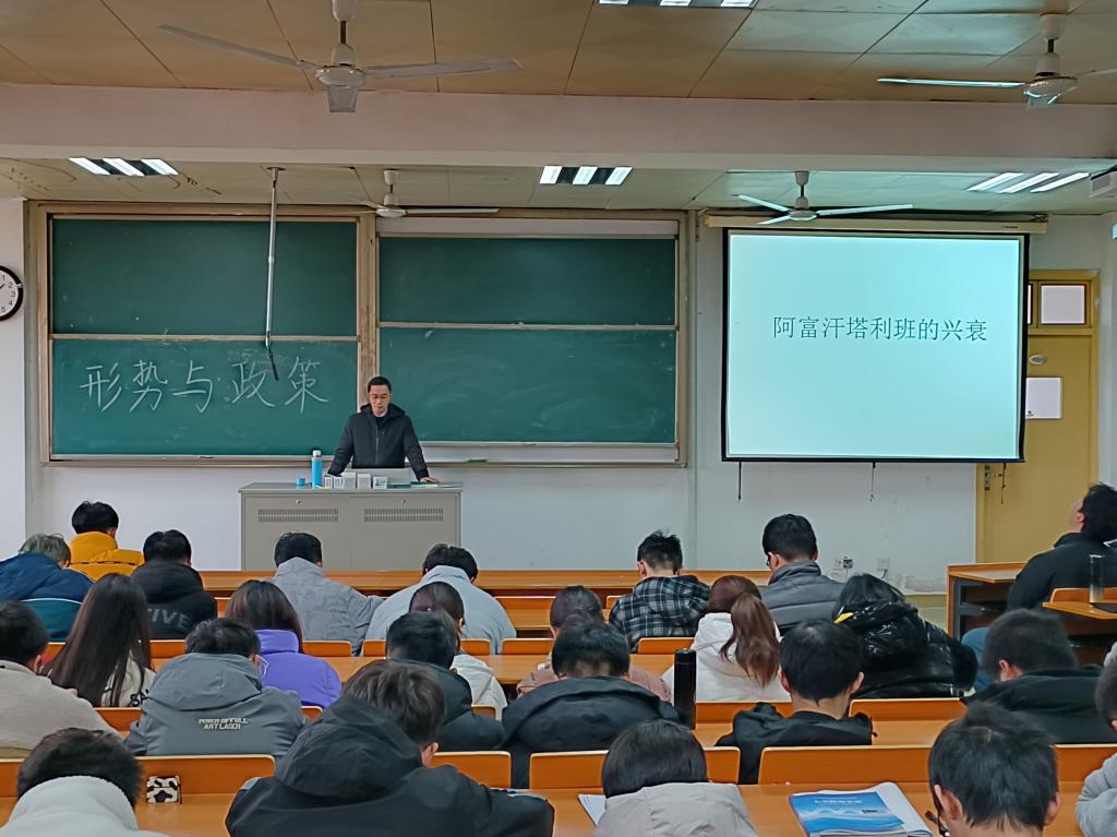 12月15日下午,开云kaiyun体育于教学楼1号楼1532教室举办了以“阿富汗塔利班的兴衰”为主题的形势与政策讲座。本次讲座邀请了马克思主义学院陈光连教授为主讲嘉宾。