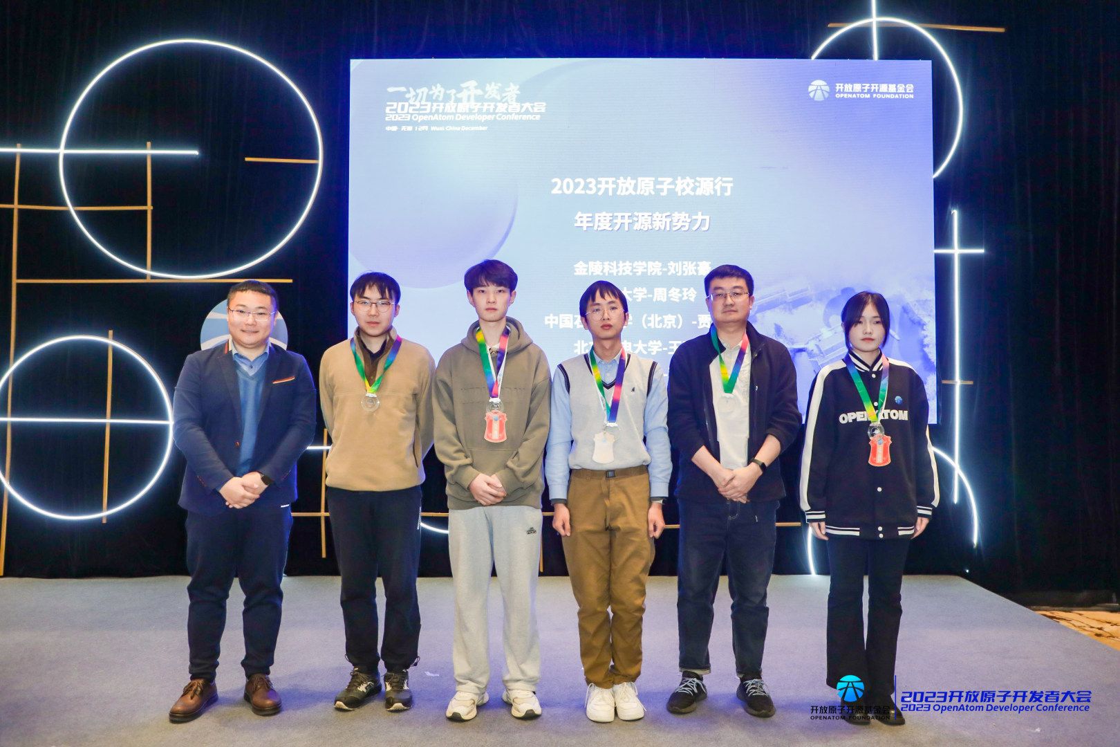 大会上举行了开放原子云社区成立仪式,为开放原子开源大赛获奖选手颁奖,我社的刘张豪同学荣获“2023开放原子校源行年度开源新势力”的称号,开云官网的开放原子开源社团荣获“2023开放原子校源行年度开源社团”的称号。社团成员参与了以“新时代,新开发者”为主题的圆桌对话。