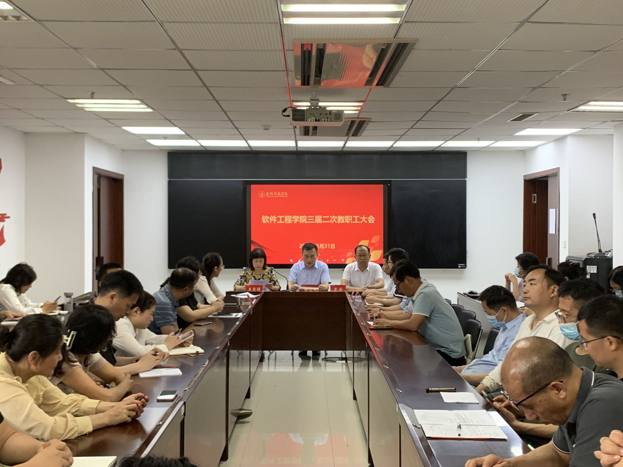 2023年5月31日,开云kaiyun体育三届二次教职工大会顺利召开,学院党政领导及全院教工参加了大会。