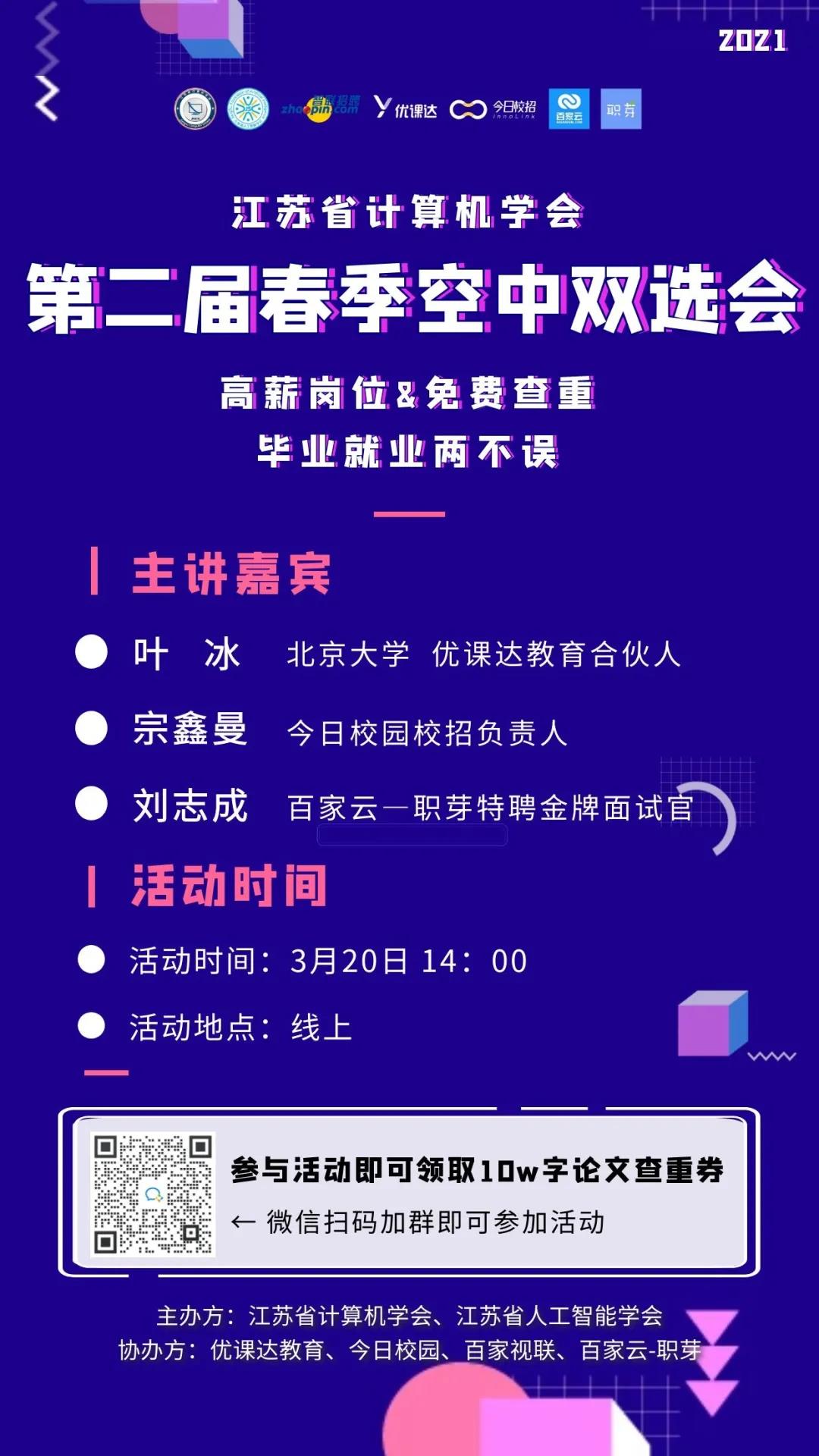 江苏省计算机学会第二届春季空中双选会火热开始!