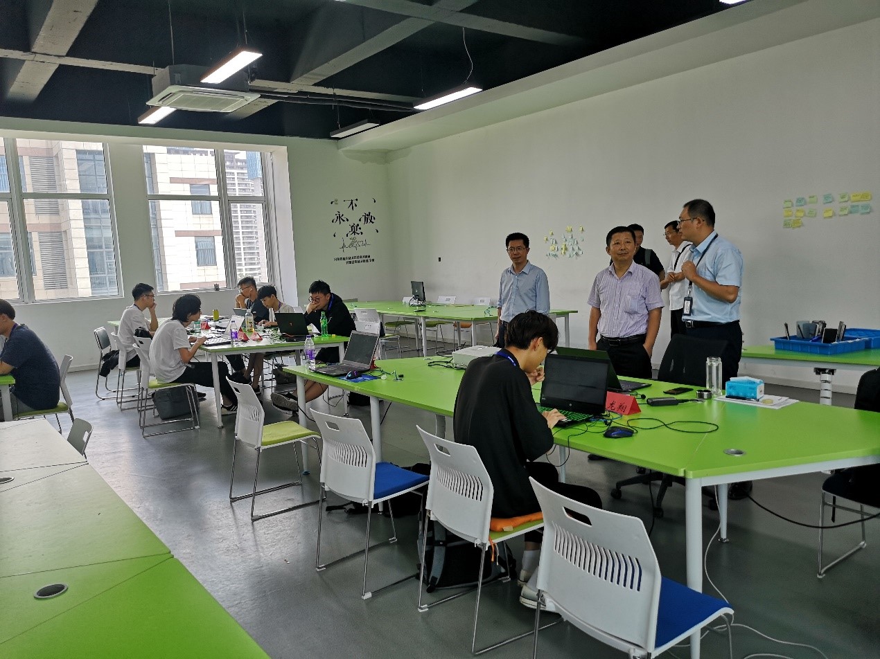 徐书记、胡院长一行首先到实习基地看望正在基地开展实习的18软件工程(嵌入式培养)专业的学生,深入了解学生自5月24日以来在实习基地这段时间的生活、学习情况,并对学生反应的各种问题给予答复并及时解决。虽然天气炎热,但宿舍和实习教室均有空调,学生对在实习基地的生活和学习环境等比较满意,通过在基地8周的项目实际训练,学生除了将在学校所学的各种专业知识进行综合运用外,还通过参与项目实战提高了软件设计开发技能,每位同学都感觉收获匪浅,目前实习项目进入分组答辩环节。然后,前往学生食堂查看学生饮食供应情况,中软国际在园区开办了一个小型食堂,解决实习学生的饮食问题,菜品较丰富,学生可以按需自主选择。在中午,前往学生宿舍调研学生的住宿条件,宿舍是4-6人间,面积较大,有空调和独立的卫生间,能满足学生的需求。最后,与中软国际的任经理、卞经理等交流本次实习情况、并对后续推进18级软件工程(嵌入式培养)的学生毕业实习和就业推荐工作等进行了深入交流。