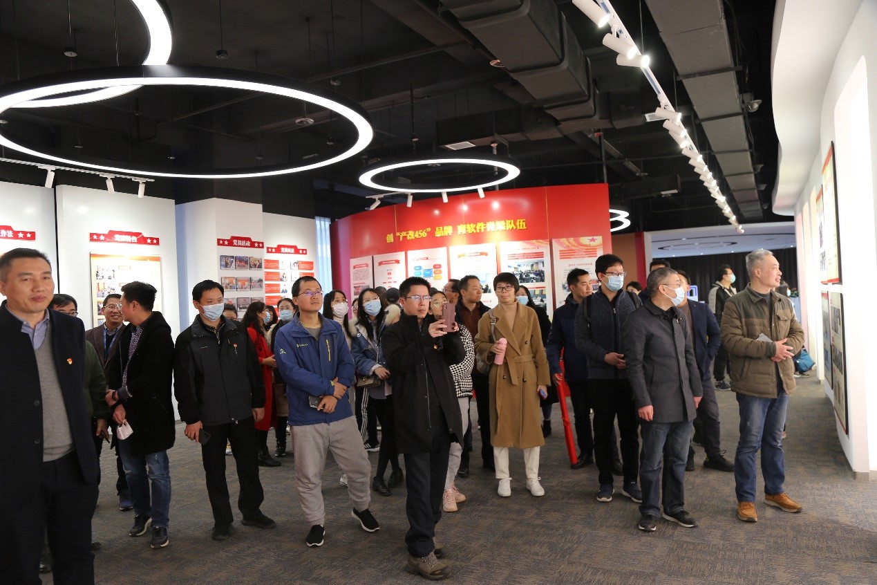南京软件产业博览馆位于中国(南京)软件谷,是集中展示南京软件名城建设成就和软件产业发展情况的重要窗口。全馆总面积1800平方米,分为南京市馆和软件谷馆两个展区,分别介绍南京市和中国(南京)软件谷的软件产业发展情况,2021年7月入选南京市第二批党史学习教育基地名单。中国(南京)软件谷坚持“高端化、国际化、品牌化”的发展方向,牢牢抓住软件和信息服务业发展的重大契机,成为中国第一软件产业基地。学院教职工首先参观了南京软件产业博览馆,讲解员通过沙盘模型,让学院教职工了解到软件谷的全貌,南园西园北园全面发展,谷中不同产业集群代表企业,为国家科技创新与技术进步做出巨大贡献。随后,学院一行人来到谷内江苏润和软件股份有限公司参观,江苏润和软件股份有限公司成立于2006年,是中国软件科技产业的大型领军企业。学院教职工在润和软件的工作人员带领下参观了公司展厅,了解公司的发展历程和业务方向。
